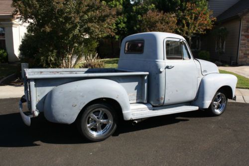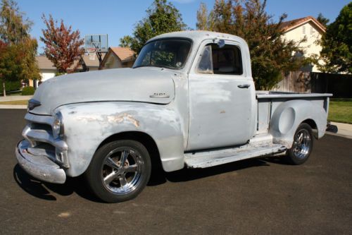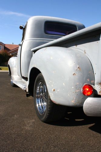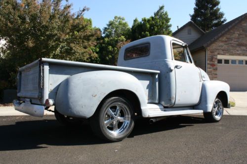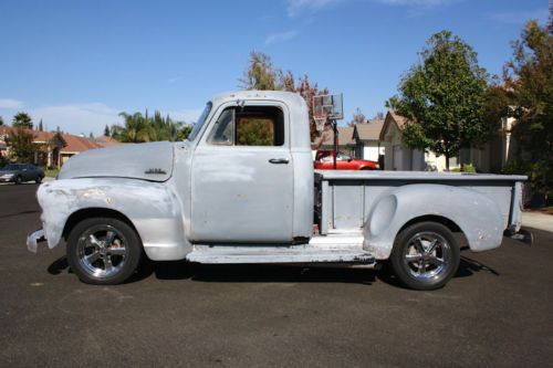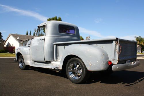 Selling my 55 truck, built to go fast with a 454 BIG BLOCK! Truck is fun to drive around to and will smoke the tires everywhere. Runs and drives well, stays cool at 190-200 degrees, Has California title with matching VIN on title and door jamb Body California truck, stock body panels, has older paint job on it that has the clear completely gone, Driver side cab corner is rusted out,passenger okay but has skim coat of bondo over it, floors look okay,from underneath the floors do not show any rust/cancer, firewall was boxed out for distributor, bed has steel sheet in bottom that is welded in, bed comes with rear wheel tubs for wider tires Engine 454 big block, all stock, motor runs excellent and only has around 20,000 miles on it,motor is solid with no leaks or lifter noise, sounds great, turbo 400 trans that was just rebuilt with new torque convertor, shift kit, 2200 stall, 10 bolt rear end with 318 gears, custom headers and dual exhaust Suspension Mustang II front clip, disc brakes up front and drums in the rear with leaf springs, master cylinder needs a return spring on pedal but brakes still work fine Interior GM steering column, 90's bench seat that is comfortable, B&M shifter with shift kit, temp gauge, gas gauge and oil hooked up only, no glass in doors that roll up and down, front and rear window are older glass, dash is nice and uncut Rims/Tires 17" Aluminum Rims ( 5 lug ), Hot Wheels Brand Front Rims 17x6 on 225/55R17 Rear Rims 17x8 on 255/50R17 California Title with matching VIN numbers Call for more info at 916-996-2037 Click on link below for additional pics Click on video of truck at idle Click on video of truck on a drive |