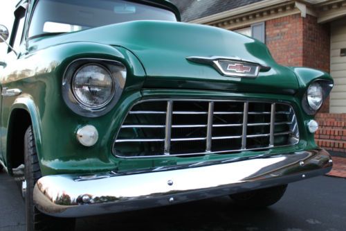 SHORT DISCRIPTION: For your consideration I'm selling a 1955 Chevrolet pickup, lots of money has been spent on this truck. It has a very good body, 350 V8 engine that runs good, Turbo 350 automatic transmission, new glass all around, new chrome bumpers and grill, 10 bolt rear-end, leather bucket seats, 5 lug Rally wheels, bed wood is OK, but needs refinished. The paint is very weak, it needs a paint job, I'll tell more details in my long description. 1955 trucks are hot, its hard to find a great deal and its even harder to find a decent body, this truck is not a perfect 100 point show truck, its a drivable truck that's worth improving. PHOTOS....PICTURES::::: 24 pictures are on this listing, ebay motors makes them hard to find, just look at the picture section and use the scroll on the right side to find more. VIN: 3A55S143704 MIEAGE: 33,208 reading and I'm sure it has turned, so add at least another 100,000 to that. TITLE: Clear Kentucky title in hand. HISTORY: None that I can document, the title just states that the car was registered in Glasgow, Kentucky. Past owner just gave up when he got the truck in the condition it is now. ...................................................................................................................................................................................... The flowing information is long and detailed if you still have interest!