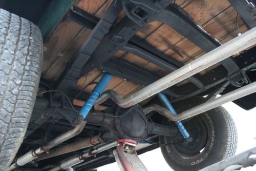 EXHAUST SYSTEM: Good, full tube headers that are not coated, good pipes with dual glass packs. TRANSMISSION: It shifts good with no slip, it a Turbo 350 3 speed automatic, the shifter works fine, but I would replace it with a nice long rod Lokar. REAR-END: It has no bearing noises, no growls, its a good highway gearing, its a 10 bolt. BRAKES: Drums all around and not power. STEERING: The truck drives very good, it is not power steering and has play in the steering gear.