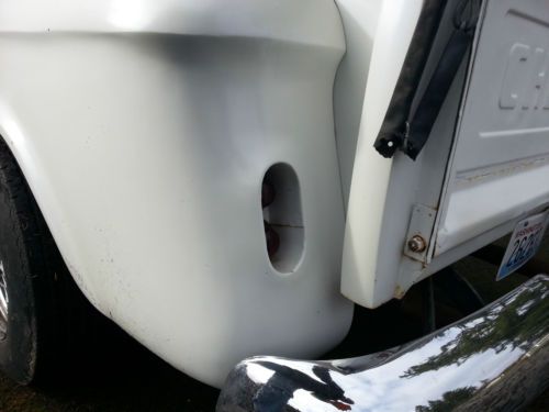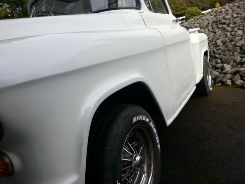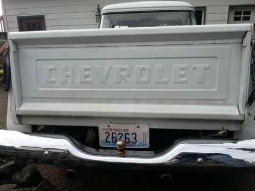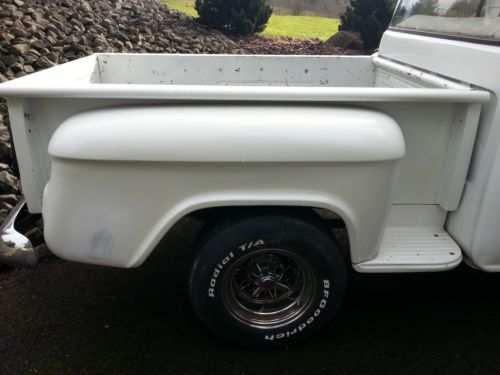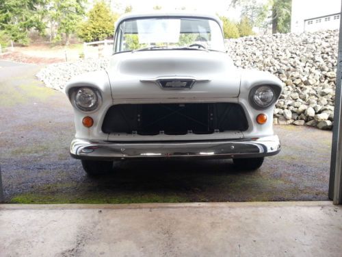 1955 Chevy Shortbed Pickup. 350ci/350 turbo, big back window, This was just purchased locally this past year with the intent to rebuild her. Its in pretty good shape for a starter project. It was stored in a pole building for the past 10years or so, was able to bring the engine back to life after a rebuild on the carb, fresh fluids and gas. It seems to run pretty good and is now drivable. Brakes need work and tires need to be replaced before I would drive it too far. Steering is manual and really needs to be converted unless you have arms like a gorilla. Floorboards are solid from what I can tell, there is rust around the vehicle which is mostly surface with a couple of bad spots on the bottom of the doors and cab which is seen in the pics as well. As you can tell by the pics, the rear lights have been frenched in. The bed is just plywood, solid though. Speedo is inop, fuel gauge works, rpm gauge works. All lights work. Body is fairly straight, right rear fender has a dent and some rust in the front. Don't know too much history about it. The original grill is with the truck, just not installed.