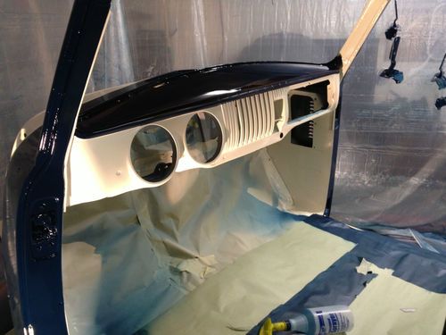 The body has been stripped and painted with PPG single stage urethane paint and wet sanded. The colors are Washington Blue, and Wimbledon White.