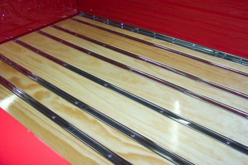 bed is trimmed in polished stainless steel with gorgeous wood flooring. The