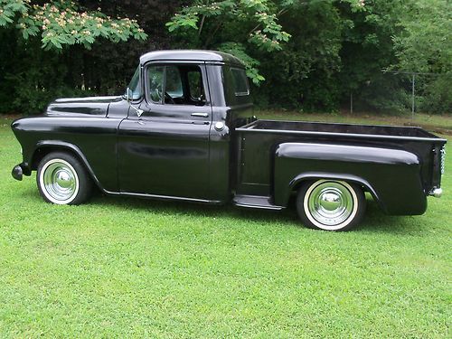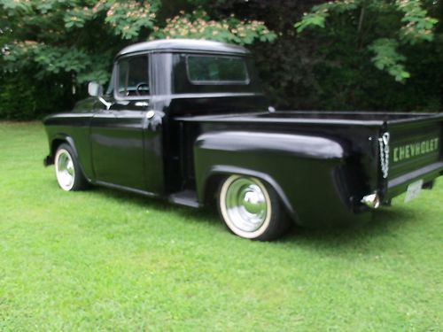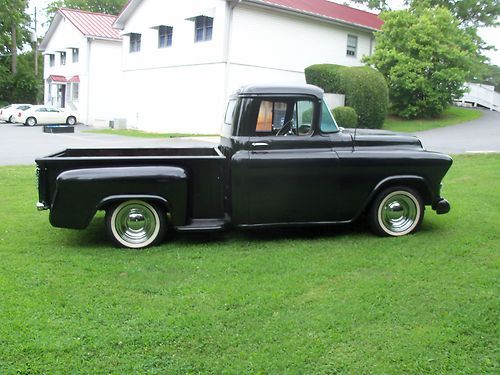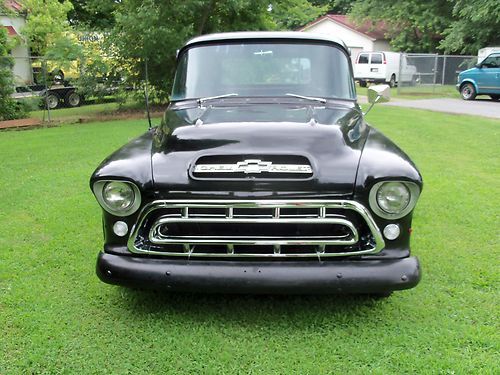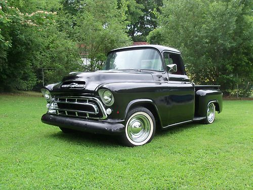 1957 CHEVROLET SWB STEPSIDE PICKUP TRUCK,, RATROD,,!!! sound truck,, selling as a rolling project !! (( no motor /trans )),, unless you want the drivetrain for extra cost,, which is still in it and driving so,, this is what you are bidding on is a roller project as of this auction,,(( the motor is a strong v-8 SBC,,turbo 350 trans fairly mildly built carb needs adjustment but this is an extra cost,,like i said it drives tight and strong )) but some guy's already have a drive train to drop in. has new disc brakes, z-28 camaro posi unit,, 5 lug system,, rod wheels,, nice wood in bed,,great builder for you,, or, optional w/ the motor and trans in it,,your call ,,,lots invested,, so ,,my loss your gain !,, $1000.00 deposit due within 24 hrs.after auction closes,, balance due within 5 days after auction closes,, CALL, 770-249-2166,,321-231-1595 if any ?? or to discuss options on drivetrain ,buyer responsible for shipping,,i will assist with loading ,i have all right as a seller to cancel auction if need be,or if sells otherwise ,,no trading please,, thanks happy bidding !