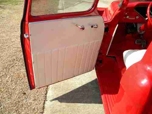 The interior has been completely re-done including the door panels, kick panels with speakers, seat, headliner and carpet. The truck is equipped with lap seatbelts. New chrome door handles and window cranks have been installed. The instruments are in a digital dash cluster. A Lokar shifter has been added. The heater and defrost controls are in the glove box. Both work well. A detatchable face CD player is mounted in the dash. A tilt column makes the cab more driver friendly.
