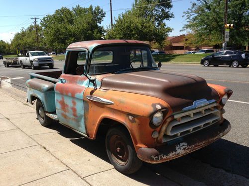 1957 chevy chevrolet 3100 stepside 3 speed 327cid black / grey interior