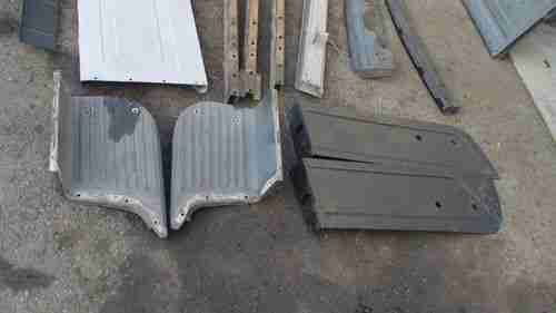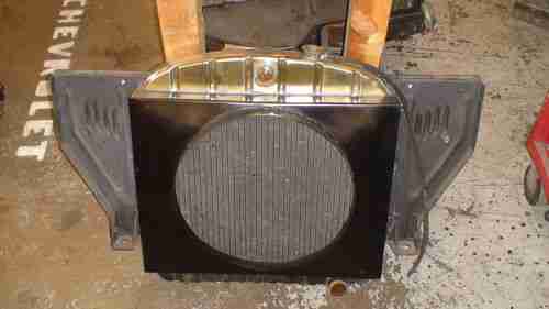 polished brass radiator 56 hood 57 fenders.. complete stepside bed with some of the pieces bead blasted.. the back rims are 15 X 10" wide and with that narrowed 9" the bed will need a mini tub