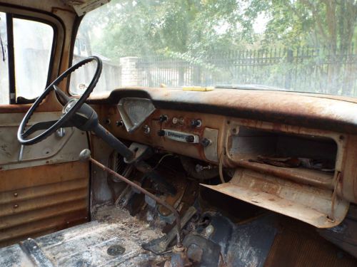 Very solid near complete1959 Apache for restore or Rat Rod. All new tires, runs, drives, stops. No rust through on running boards, floor boards, or frame, all are solid. Lower cab base points are only rust through areas and they are minimal. Engine runs smooth but smokes, compression is 180 on all 6, suspect valve guides. Headlights, horn, radio all work. Great starting point for an Apache project 713 825-0728.