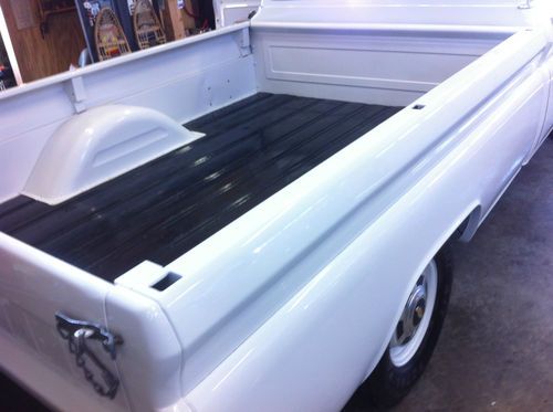 Very stock thoughout with clean interior, rubber matted floor, nicely redone bench seat, uncut dash with factory AM radio that stills works great!