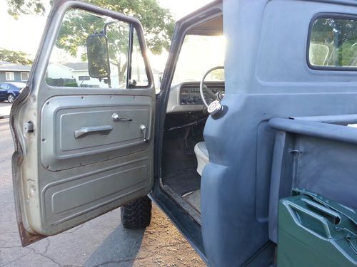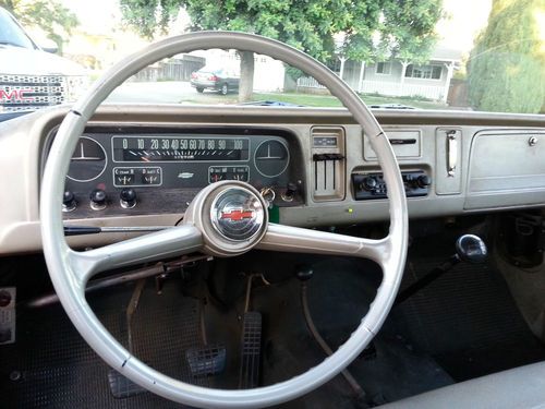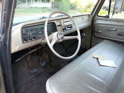The interior is all original except for the radio which was installed without cutting the dashboard. Everything works inside the truck, this includes all gauges, radio, horn, hazard lights, switches, all interior lights, brake lights, turn signals, headlights, tail lights and vents. The original steering wheel has no cracks and the turn signals still cancel. This truck still has the original seat and upholstery. It has never been reupholstered with very few blemishes and no tears. The original 4wd operation instruction stickers are in great shape and still attached to the roof between the sun visors. There is nothing missing. The windows roll up and down down very smoothly and completely. The gun rack was installed by the original owner. Upon purchase, you will also receive the original keys.