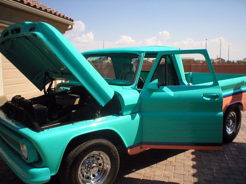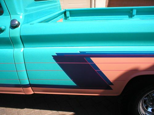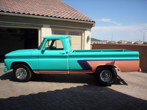 THE PICTURES TELL THE STORY, LOOK CLOSLY. THIS IS A SHARP BLAST FROM THE PAST, THE SIXTY CHEVYS WERE THE BEST LOOKING, ITS GETS THUMBS UP EVERYWHERE I DRIVE AND GETS ALOT OF ATTENTION AT LOCAL CAR SHOWS. TRUCK STARTS , RUNS AND DRIVES VERY WELL. THE ONLY TWO ITEMS I WANT TO DISCLOSE ARE THE SHIFTER IS WORN BUT OPERATES . THE TRUCK ALSO HAS THE TYPICAL REAR MAIN SEAL OIL LEAK AS ON ALL SMALLBLOCKS. NIETHER WILL STOP FROM OPERATING THE TRUCK.