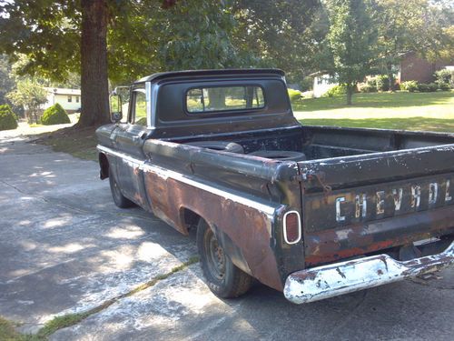 Good running 1965 Chevy pickup.  New clutch, pressure plate, t.o. bearing, new fuel pump, coil, tuneup, oil change & filter.  Also includes 2 extra used tires with good tread. Body needs restoration but mechanically sound.  Drives fine, good brakes, all gauges except fuel gauge work, lights work, great glass all around.  This is a good running old truck.  No warranties, no refunds, clean Georgia title.  Buyer responsible for shipping.  Vehicle and title will be released when financial transfer is complete. Re-listed due to non-payment on previous sale.  I reserve the right to end this auction early - vehicle is listed for sale locally.   This is a NO RESERVE auction.  High bidder gets it.