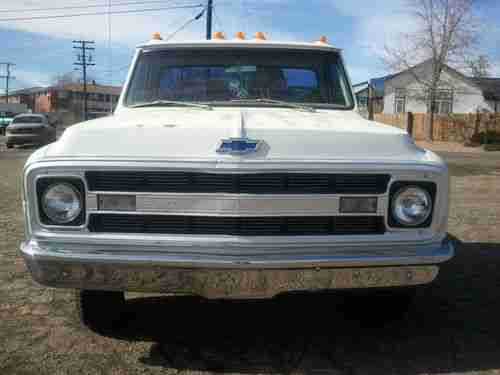 Up for sale is a New Mexico 1970 Chevrolet 1 ton Dually. This truck is as totally rust free as you will find, having lived 95% of it's life in New Mexico. As I understand it, this truck was originally a 1 ton flatbed, and at some point a 1970 "Longhorn" bed was added. The rear wheel wells have a slight tub, the rear wheels do not stick out like a more typical dually truck. The engine is a freshly rebuilt 350, and runs perfectly. Transmission is a typical 4 speed granny low, clutch is fine, brakes work fine. No AC.