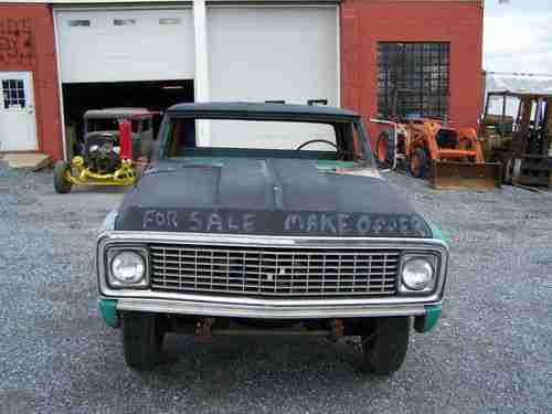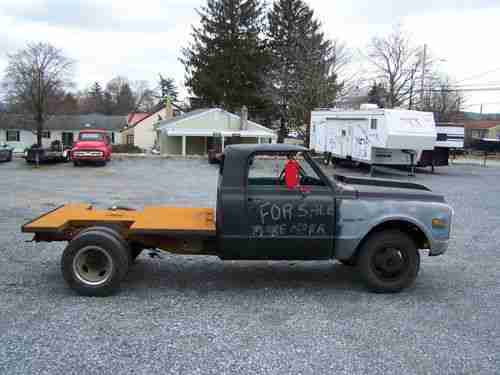 I have a 1970 chevy cab and a 1967 1 ton frame with a 4 speed trans with low 1st it is chop 3" and a extended cab of 4" the body work needs finished it has a new clutch plat throwout bearing. I have a 350 motor for it it did run when I took it out the bed has a new gooseneck hitch. The 4 link bars are new so are the airbags. It is a flip front end the hood is welded to the fenders you coud cut the spot welds to put back. I have all the parts of two trucks to finish it LOTS OF PARTS