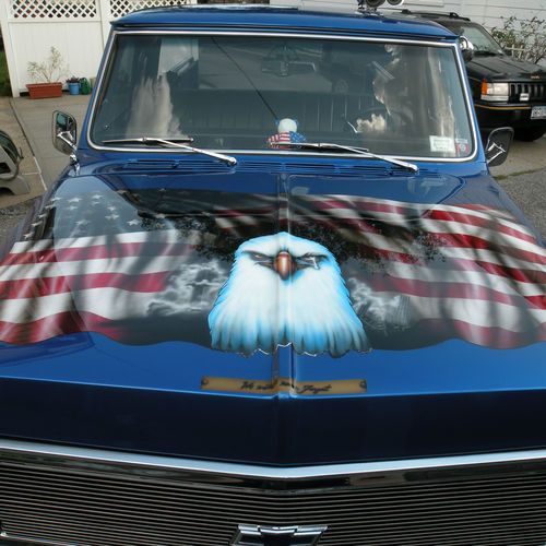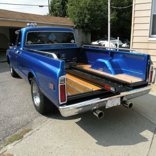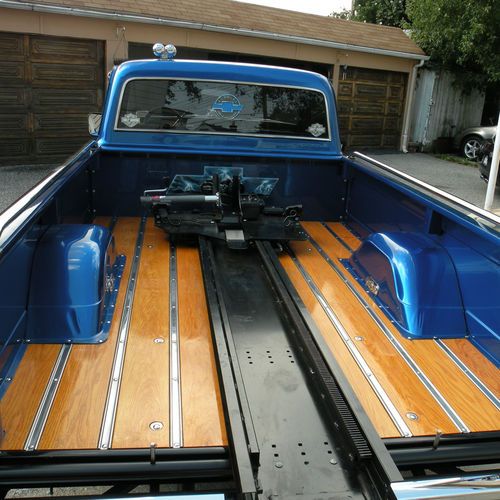 I am listing this this beautiful 1971 CHEVROLET C10 CUSTOM SHOW QUALITY PICKUP along with 3 other collectable vehicles for a friend , he is scheduled to move and has to part with his absolutely beautiful collection. This truck has a recent total frame off restoration , the custom paint with graphics are show quality. The features are: a regular cab , an 8 foot wood bed with a power motorcycle lift installed , 350 V8 engine w/less then 500 miles , automatic transmission , 12 bolt rear , cold A/C and a custom sound system. The tailgate doesn't fit on with the motorcycle lift , so the owner would leave it off when the lift is in the bed , we are including a new tailgate that can be customized to work with the lift in the bed. You wont find a cleaner show truck , Over $50,000 invested. Always kept clean and detailed and stored in a clean garage , Smoke Free , ready for its new owner.. Here is your chance to own a beautiful custom truck , This is one beautiful ride , ready for the shows! Please look at the other vehicle I have for sale from the same owner , we will accept offers on multiple purchases. Questions are welcome.