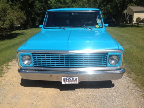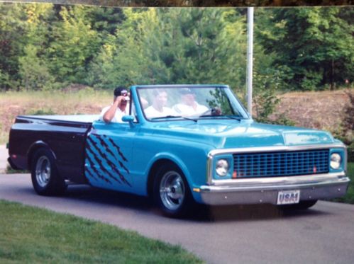 Beautiful Chevy Short Box Pickup, Original 454 cu. in. Big Block can run on pump gas. Big cylinder heads, 10.5 compression ratio, bigger axle bearings. Modified Truck is lowered and can be a convertable with a removeable top that lifts off. This Truck has new Tires, Power Disc Brakes, A/C, P.S., and, is an automatic. Interior is Black. This is a great smooth running Truck ready to cruise and show. Smoke free and garage kept. Buyer pays shipping.