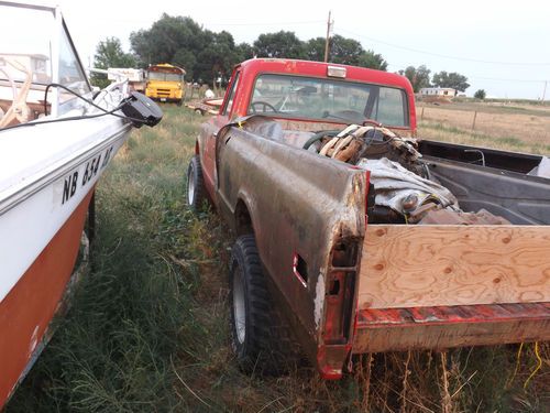 1972 3/4 ton 4x4 with Colorado reassignment vin but Wyoming title don't say salvage builder or nothing bad believe it is an original automatic truck with tilt column power disc brakes power steering bought it in the basket case condition you see to make a tough old truck supposedly the trans was rebuilt looks clean don't know though frame is solid aside from someone welded in a hitch and cut it off didn't get the frame with the gas ax though engine is mid 80s id say small block ran the numbers but didn't really figure it out axles I believe are spicer non posi missing the instrument cluster and glove box thinkin the rest is mostly there rough tough old truck does it run I don't know hows it drive I don't know just know I lost intrest in this old girl before I started all other questions ill try to answer no warranty expressed or implied cause honestly I don't know it was rolled off a trailer and been there since December 28 2012