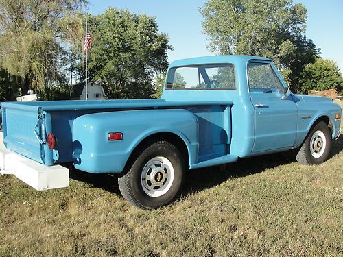 I have a beautiful all-original 1972 Chevy C20 2WD step-side longbed pickup for sale. Owned by one family and has 62,900 original miles. It has fresh paint in the original color, new rockers, all rust on fenders has been removed. It also has new plugs, wires, points, condensor, distributor cap, rotor cap and dual exhaust. Four barrel carb has been rebuilt. Wood bed is original with a few minor defects. It has power front disc brakes. Does not have power steering or radio. This truck runs great, and is a great driver. This is a very rare truck, being a longbed step-side. Just under 4,000 were made in 1972. I have the original warranty paperwork from when it was purchased. Thanks for looking! 660.676.2714.
