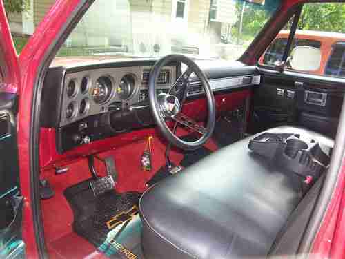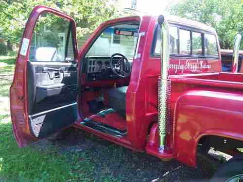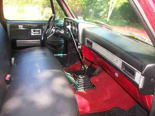 rebuilt 1987 v8 350 ,rebuilt carb ,new alternator ,new battery ,front brakes and brake lines ,new carpet ,new seat cover headers into chrome dual stacks ,chrome valve covers ,20 inch chrome rims ,lokar floor shifter ,this truck runs like a bear with his ass on fire