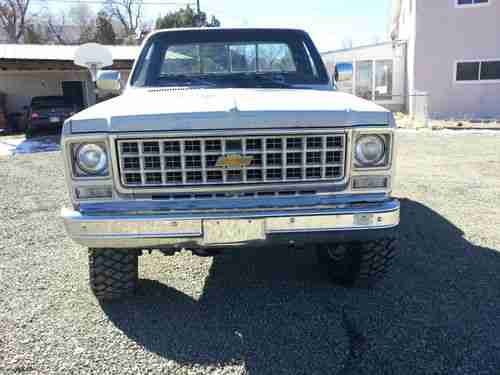 1980 Chevrolet truck with lift. 33" tires that are new 350 four bolt main engine 4 speed transmission (manual) 4x4 Primered in color. This truck is a work in progress that only needs a few more minor things to be ready for the road, mudding, or whatever your heart desires. Please text questions to the following: 719-466-1348