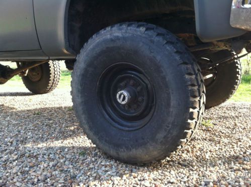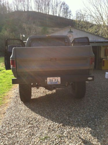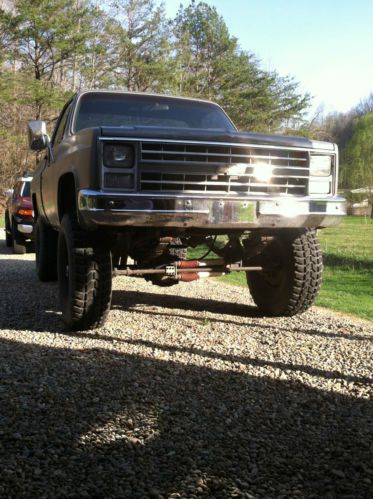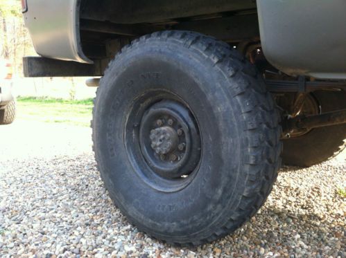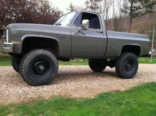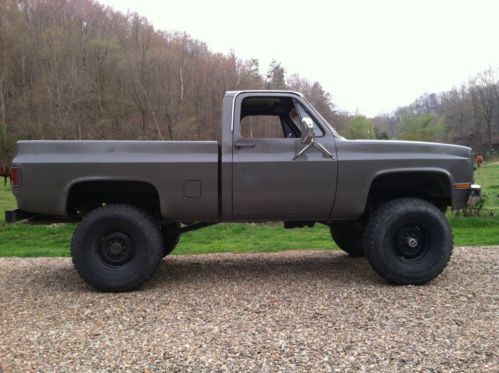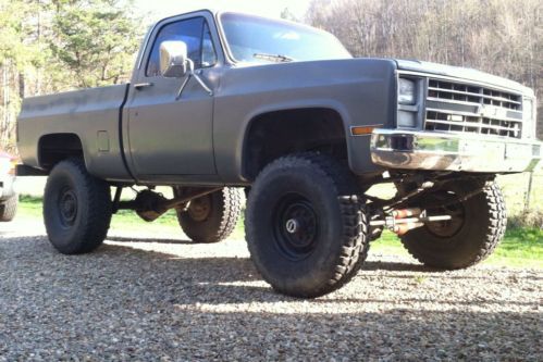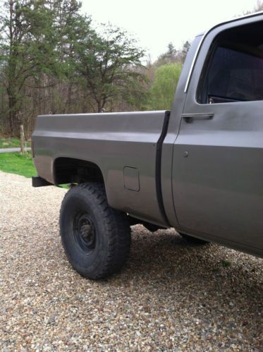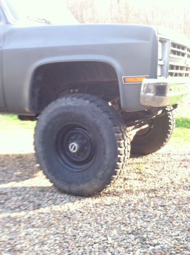 Professionally heavy duty built, 1980 Chevy, short wheel base, 4x4 with 1982 3/4 ton drive train. Has a Jegs or Jasper factory built 350, not sure of HP, or cam size, but sounds and runs like a beast. A year or so ago it had all new motor, aluminum intake, Holly carb, headers, dual exhaust, rebuilt auto tranny with shift kit installed. Has nearly new Goodyear 37x12.5x16.5 military OZ mud tires, with spare. At local 4 wheel drive shop had 6" lift kit with dual shocks and dual stabilizer shocks installed. Also install a steering box, frame brace from National Tire and Wheel welded in before any big tires and wheels were put on. The welder said it was the best, cleanest frame he had ever seen from this year of truck. Had a new front drive shaft made with new yoke and splines. New universal joints, brakes and shocks all around. Installed 3/4 ton rear end and front end from an 82 GMC, with 373 gears. Runs and drives straight as an arrow, no shakes, shimmies or road walking. Starts right up, no carb issues at all. Works perfect Don't ever have to touch it. Truck has no leaks or drips or mystery spots left on drive way. All gauges work great. All lights, signals, wipers, heater work fine. The body is really solid. Cab mounts are good, new inner fenders. Only had 2 small rust spots about 2x2 inches at bottom of both doors that needed patched. Bed is completely solid, has no rust thru anywhere, but tailgate latch handle is missing. Body is tight and was sanded and primed and painted with gray Ford tractor paint. Looks great from about 20 feet away (haha). Was more into the mechanical side than the paint side when built. The body is really straight and would be easily painted at an auto body shop. I didn't install lockers, because I didn't to rape in the mud or woods. I use it to drive to work every day, and to haul firewood or whatever, and not have to worry about getting stuck in ruts or snow. I love driving it. It sounds great and shifts great. The seat is good, but the old dash pad is cracked. The floor had one small hole in it I patched. The interior is old, but all there. Could be replaced with after market stuff cheap, and look like a new truck inside again. It's a really solid, manly truck. Not a poser 1/2 ton with big tires. It will go about anywhere off-road, or get in it and drive cross country on the interstates. It never overheats or uses oil. The motor came from a friend of mine at work who originally bought the truck from his neighbor's wife. Her husband had ordered the new motor and had it put in, but he passed away 13,000 miles later. I'd say it now has about 18,000 miles on it. This truck will last you for years to come. It is a really dependable truck. I hate to sell it, but I'm facing surgery and will be off work for a good while, and going to need extra money to pay the bills. |