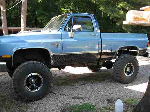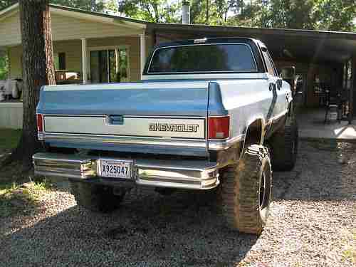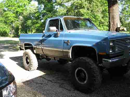 1986 chevy k10 4x4 has strong 305 with cam run great,new TH350 tranny ,sittin on dana 44 rear ends that are like bran new ,has 38.5 boggers in fair shap ,they will last long time if you just drive on weekend.this truck is very sound ,no rust ,nice paint very clean,you can play hard on sunday an it will be ready for work monday,its solid.it still needs some stuff done to it to make it 100% truck,good sound system,this truck turns heads. for more info call318-500-0224