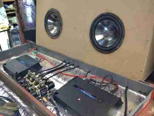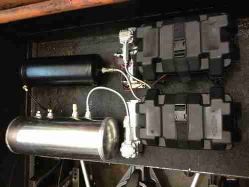 Air ride suspension on all corners that you can control individually two viar compressors and two tanks ran by two battery's in boxes