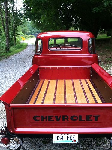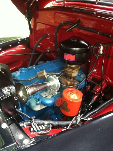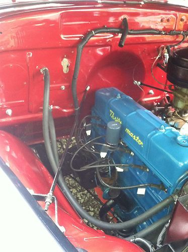 Original suspension and running gears. Top speed about 50mph. Some body panels replaced, grill, fenders, bed panels. New tube type tires. Brakes all new lines, drums, and shoes. New wiring harness and most glass. Have spare tire carrier that is included with truck. Oak floor boards in bed coated thick to last for years. Never exposed to weather since painted always kept inside. Heat works great, but no A/C. 3 speed transmission on the column rebuilt. Engine has good compression and runs strong. Clutch works properly and transmission shifts smooth. Has 6volt system along with vacuum wipers. Foot starter still works properly. Truck has a couple of paint runs nothing major other than that paint looks amazing. Has many coats and clear coated over it.