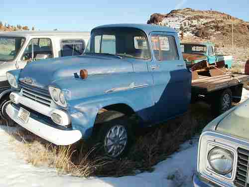 This 1958 Chevy 1 Ton Flatbed Pickup Truck is a 358 V8 Automatic. It has disc brakes, power steering and sub-frame. It runs, steers and stops good. It is located in the Butte, Montana area. I can be reached at 406-498-9696, leave a message please.