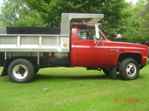 professionaly restored 29,500 orginal miles i installed this brand new 8 foot aluminum dump bed(never hauled a load yet) with a in cab electric tailgate opener and coal door 1/4 inch thick floor. i installed new a/c delco spark plugs, wires air filter, distribitor cap and rotor, fuel filter,new front rotors and brake pads, new rear brake shoes. it has the dana 60 king pin front axle and the 10.5 /14 bolt rear axle. 4.56 gear ratio.this truck is in like new condition inside and out, it has a cheslea pto driven pump with power up and down. lt235 85r16 10 ply tires, this truck is from the south, no rust all orginal doors, rockers and fenders, new base coat clear coat factory red color, i installed the full hydraulic 9 foot wide fisher snow plow and was never plowed with as of yet. this truck can be driven any where you need to go so no worries there, it still has all the factory brake lines on it rust free, new belts and hoses,its just a real nice work horse. it is for sale localy and i will end this auction at any time, no warrenty what so ever,.if you have any questions feel free to call me at 814 881 0787 or email me at jpoeta628@aol,com forgot to mention new window felt strips installed and it has working ice cold air conditioning with a new condenser and dryer converted to 134a. electric brake controllor. |