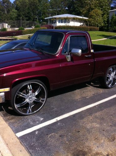 Customized Chevy Silverado, rebuilt 350 motor, reinforced suspension, 28 inch rims, rebuilt transmission, customized interior, customized paint, pipes added. Runs like a gem sounds like a beast.