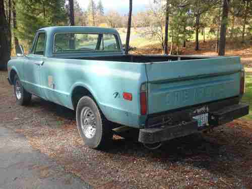 The bed of the truck has the original wood bed that appears to be in good condition... custom diamond plating was installed over the original bed floor. The chrome was removed to begin a restoration but unfortunately, has since been lost. All glass is good and everything opens and closes like it should. This truck came with 3 factory fuel tanks, bucket seats, and A/C. Seats were replaced with a bench seat (I have original 1968 bucket seats that came out of a 1-ton truck that I will sell if interested...needs reupholstered) and A/C was removed. I'm not sure about the gearing but it is high geared and will go 70 MPH easy on the freeway.Tires have approximately 70% tread left. Will make a road trip...no problem.