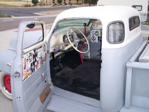 This is a 1955 Chevy 1st Series Pickup. 5 window with a 7 inch chop. 1954 Buick headlights, '54 Buick steering wheel and column, '54 Chevy Belair car dashboard, and '50 Pontiac tail lights. The front end is a '84 Corvette...the rear end is a '84 Camaro 10 bolt. The windshield and rear window are glass...the door and corner windows are plexiglass. The box length has been shortened in the rear and the tailgate lifts out. The pickup sits on the original frame. Engine is a good 350 and the tranny is a Turbo 400 automatic with floor shift. Tires are nearly new 15" Coker Classics wide whites. It's my daily driver shop truck, and I would take it anywhere......call me if you have any questions, 307-680-7494. This is a KOOL head turning ride...don't miss this one!!! $500 Paypal payment at end of auction and the balance in cash or cashier's check when picked up. Pickup is in northeast Wyoming and will haul to northcentral Nebraska if closer to winning bidder. Good luck bidding. Thanks |
