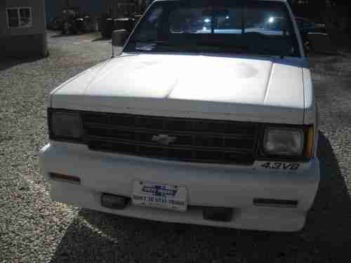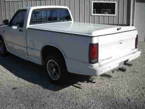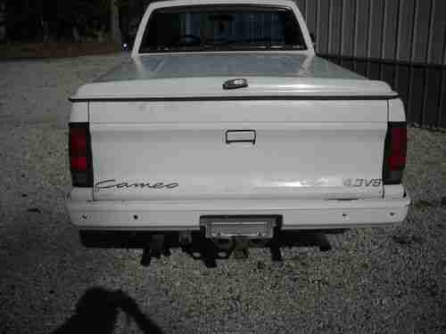 1989 CHEVY S-10 CAMEO.VERY RARE TRUCK IN 1989.LESS THAN FORTY WERE PRODUCED.HAVE ALL DOCUMENTATION PROVING ITS AUTHENTICITY SINCE NEW.A FILE FOLDER FULL OF PAPERWORK WITH ORIGINAL OWNERS MANUAL,INCLUDING DOOR JAMB DECAL DETAILING ITS PRODUCTION IN LOUISIANA.IT HAS NOT BEEN RESTORED,BUT WAS RESRAYED IN EARLY 90'S DUE TO PAINT DELAMINATION,OF THAT ERA.RUNS AND DRIVES EXCELLANT.BODY IS STRAIGHT AND STILLWEARS ORIGINAL CAMEO GROUND EFFECTS EXCEPT FOR REAR ROLL PAN,AS A BUMPER AND REESE HITCH WERE ADDED.HAS A LEER SOLID BED COVER ON IT,AND HAS BEEN MOST ITS LIFE.BED IS CLEAN.ARE A FEW SMALL SURFACE RUST SPOTS ON BODY,LESS THAN DIME SIZE.WORST RUST IS IN INSIDE BOTTOM OF TAILGATE.PROBLY NEEDS REPLACEMENT.THIS TRUCK CAME STOCK WITH4.3 FUEL INJ.ENG.,AUTO TRANS.,FACTORY DUAL EXHAUST,AND 15 IN.STEEL RALLY WHEELS,WITH GOODYEAR EAGLE ST TIRES.INTERIOR IS CLEAN,BUT HAS WEAR ON DRIVER SIDE.DASH HAS A COUPLE OF CRACKS FROM SUN DAMAGE.TRUCK IS NOT PERFECT,BUT I FEEL ITS ABOVE AVERAGE CONDITION FOR ITS AGE AND IS VERY RESTORABLE OR JUST ENJOY AS IS.THE TRK WAS OWNED BY AN OLDER MAN WHO BOUGHT NEW,AND ONLY DROVE IT A FEW MILES TO WORK EACH DAY.I KNOW THAT SOUNDS CLECHE,BUT ITS TRUE AND THE CONDITION SHOWS THAT IT HAS NOT BEEN ABUSED.MOST OF WHATS WRONG WITH THIS TRUNK HAS BEEN CAUSED BY IT NOT BEING DRIVEN ENOUGH! TIRES SHOW DRYROT,BUT OTHER THAN THAT,I WOULD NOT BE AFRAID TO DRIVE THIS TRK. ANYWHERE LIKE I SAID,FEWER THAN 40 WERE MADE.DO YOUR HOMEWORK,AND WITHOUT A DOUBT,THIS IS A DOCUMENTED SURVIVOR. FEEL FREE TO CALL ME AND DISCUSS ANY QUESTIONS YOU MAY HAVE AT812-522-1221
