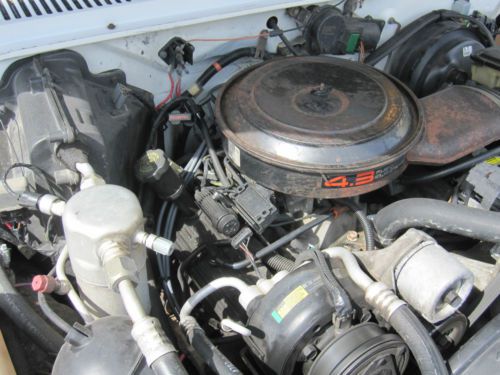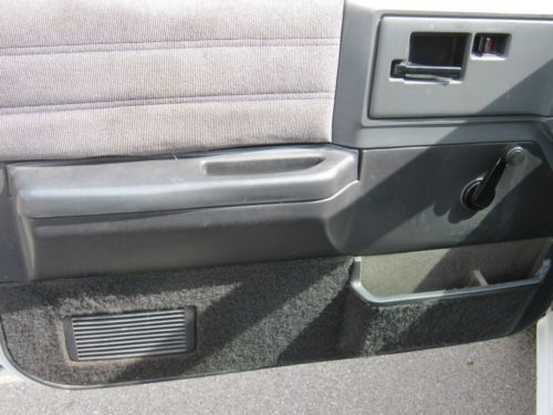 Exterior: The truck wears her original paint, all except the driver's fender which has had a spot refinish done some time long ago. The paint is not chalky, although faded, it is very presentable waxed up. I recently installed new door bushings, so the doors are tight and don't droop. Has a good windshield and the rear glass is a slider. Bed appears to have had a plastic liner in it since new, some surface rust under the edges, but no gaudy spray in liner hiding dents or holes. Driver's door has a few dents, other than that and a few minor blemishes, the body is rust free and straight to be 21 years old. Rockers, cab corners, floors, rust free as in pics. Tires a very good, wheels are not beat up. Interior: I think this is the best part. Besides a few cracks in the dash, which we all know, happens to the trucks early in their lives, the insides are great. New headliner last week, carpet is original and nice. Door panels clean as well. Seat's cloth has no tears or rips and is still firm. Sits awesome. Console has a blemish in the lid, but is not broken or loose. The interior looks like it should, not abused. Heat is hot, a/c is cold, everything inside works as it should. Drivetrain: 4.3 Liter v6 powers the truck, backed by an overdrive transmission. I was told the 93's had a much better tranny than the older ones. It shifts nice and strong. The engine runs flawlessly as well, I have owned many of the 90's Chevy v6 engines, they never let me down no matter the mileage. I just spent $500 on front end components to make this baby drive as good as she looks. All ball joints, control arm bushings, alignment, etc. Anything they saw needed, done. Oil changed, she is clean and ready to roll.