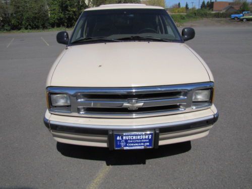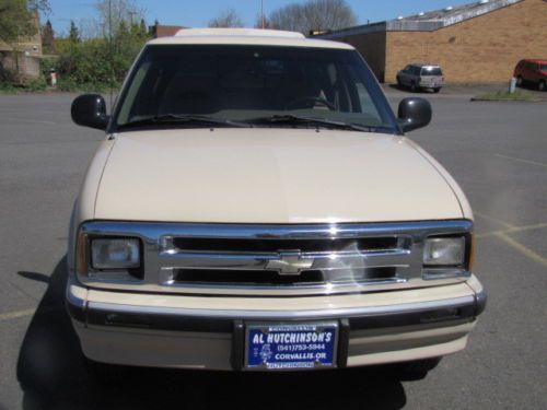 This Chevrolet S-10 has the following equipment: 4.3 liter V6 fuel injected engine, 4 speed automatic Overdrive transmission, and 2 Wheel drive. LS Trim package, Bucket seats in front, with rear jump seats, Factory Air conditioning, Power steering and brakes, Power windows, power door locks, power mirrors,Tilt steering wheel, cruise control, AM-FM with CD, MP3 and Bluetooth with remote control. Everything works. Color matched Fiberglass canopy. Sliding rear window. Tires are Hankook Optimo 724 Series tires, 205/75/15 in size. ( 95% tread or 10/32 of tread remaining, and are a matched set). This truck starts, runs, drives and stops great. It has just been serviced (Lube, Oil Change and filter - And new brakes in front), safety checked and detailed. It needs nothing, but a new owner. Both sets of original keys and the original owner's manual. Fly in and drive this truck home. We are located 85 miles South of the Portland, Oregon Airport. We are 35 miles North of the Eugene, Oregon Airport. Or, we can coordinate with your shipping company, to get it shipped to you, at your expense. We have been an Ebayer since 2002, for 12 years. 100% rating. We have been in business since 1977, for over 37 years. We were recently the "Oregon Quality Dealer of the Year", out of 800 dealers. If you have any questions, please email us, or call us at (541) 753-5944. Or, call me on my cell phone (541) 740-4140, my name is Al Hutchinson. Our business is: Al Hutchinson Auto Center, 1800 NW 9th St, Corvallis, Oregon 97330. We are Oregon Motor Vehicle Dealer #343. The truck is for sale locally, so the Auction may end early, if sold. So we have a very low mile, immaculate truck up for Auction. The truck is available for your inspection. If you want to have an independent inspection, we have a local General Motors dealer, who would do that for you. This is an amazing 20 year old truck, that appears to be 2 years old. Look at the pictures. It is really that nice. Good Luck bidding. |