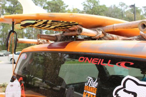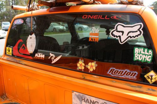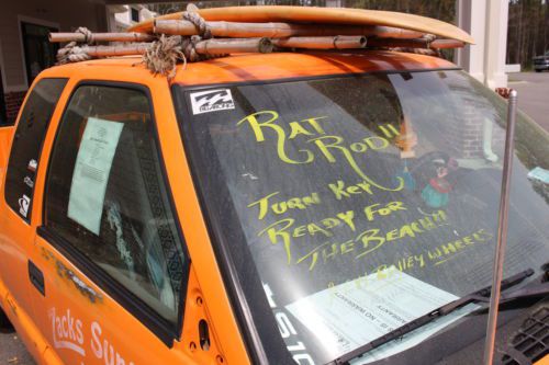 2001 Chevrolet S-10 Pick up truck old school white wall tires Orange in color reads "Zacks Surf Shack" on the sides custom restore to look like a Surfers truck. |