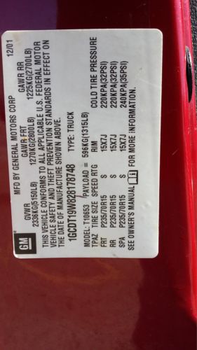 This 2002 Chevy S-10 4x4 is in excellent condition mechanically and only has 97,000 miles. It is an extended cab, 3rd door, V6 4x4 and it has a few cosmetic flaws. There is a dent in the rear bumper. Very light hail damage and rust on the driver side rear door. The rust is small compared to other S-10's of that year. It has a bed liner, rubber bed mat, automatic transmission, ac, cd player with remote and accessory hook up. It has been inspected mechanically and is ready to go.