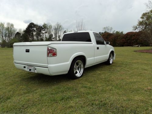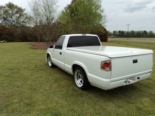 This is a nice S-10 that I purchased for parts to build an old Chevrolet of mine and have decided to go a different route. It was driven to my house 400 miles so it is a driver (not junk), this truck was driven an average of 75 mph on the interstate and mpg was 23.45 (not bad for 400 plus hp) The truck has custom white gauges, sunroof, alpine cd player, custom bed cover, hidden receiver hitch, high intensity light kit, has been prof. lowered, has 17" billet specialty street lights, optima battery, true cowl induction hood, slotted/cross drilled rotors on all four corners, truck shows 120977. miles but engine is low miles. engine is a built LS with 232/230 duration cam that has a very choppy idle (sound good), engine has 85 mm throttle body, 35 lb. injectors, sanderson headers w/electric cutouts, engine has polished dress-up kit, polished radiator overflow, cold air kit, rear end is built ford 8.8 w/3.50 geared tru trac posi unit, trans is built 4L60E with 3000 stall. Truck is being sold "as is" and shipping is the buyers responsibility. There will be a 1000. dollar deposit due within 48 hrs of auction ending. You are more than welcome to come by and see the truck or have it inspected by a professional if you wish. Please see my feedbacks and do not bid if you have negative or no feedback without talking to me first. (I do not need help selling this truck so please do not contact me for that purpose) My Reserve is set at 12,500. and is revealed now to aid bidders that may not be interested in a truck with this amount of money already invested in it. You can call me with questions @ 662-386-7300 Thank you Larry