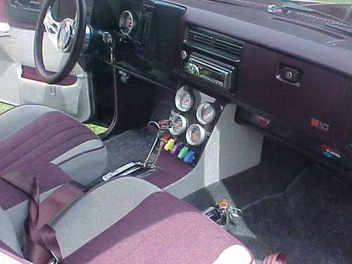 Torque Thrust II rims. Custom interior stereo is a Pioneer cd tuner w/ 4-10 inch subs & 1.0 Farad Capacitor. Phantom grill w/ recessed headlamps & strobes. Custom tail marker & signal lights. I had Carchex go over the truck cause in was in Indiana and live