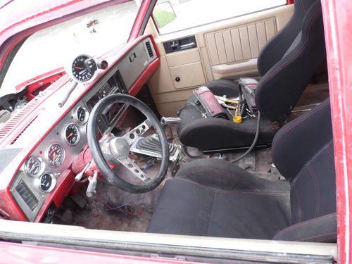 1984 S10 extended cab pickup truck. New paint on cab. New cow induction hood. Has a fresh 385ci sbc stroker. all forged internals with aluminum heads that are professionally port and polished as well as intake matched has a holly 780carb..this engine is a high rpm engine was built to make power from 3500-7800rpm..the engine still has breakin oil in it its fresh..the transmission is a th350 fairbanks shift kit red clutches and a 3500stall converter..the engine and transmission alone has over$ 6,000.00 in parts.. the rearend has been back halfed..and the rear end is stock at the moment.(no aftermarket axles ext..) has newer 5star weld wheels good tires on front..i payed over $800.00 for the rims alone and are in very good shape..rear tires need replaces..we were in the process of building a nice shop truck with it but we went with a car instead so i have no desire for the truck now..it does not have a fuel tank/cell..we fabed a fuel can to the rear to break in the engine for the time being..engine runs great other than the carb needs jeted due to it came off a big block..and transmission shift great and firm..i expect that the engine will make 550hp est..or more..i also built the engine to handle a 300shot fo nitrious as well but we have not used nos on this engine we only broke it in thats it...for more info you can call the shop any time m-f ohio time 9-10pm ask for tim (740)831-4027..this would be a very nice project not far from being complete..If you buy the truck and put deposit down and need more time to get shipped please let us know, other wise deposit will be forfeited.. thanks for looking..