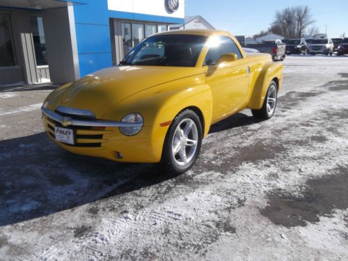 Up for sale is a an awesome chance to own a piece of Chevrolet History!! First Model year Chevy SSR Convertible!! Bright Yellow with Black leather interior. Brand new Tires front and Back Power Convertible top in perfect working condition! Leather interior shows normal wear and tear along with driver armrest as you can see in the pictures. There are a few rock ships and wheel scuff but still looks amazing!!!! Freshly Serviced!! Please call Jake, Terry, or Karl @ 1800-346-5398 with any questions. Or call/text 701-866-0638 after hours