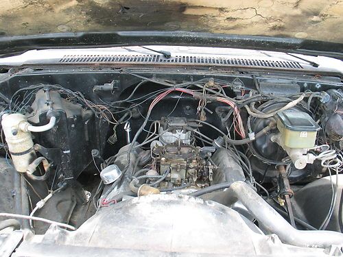 Rebuilt Chevy 350 with TH350 trans and NP208 transfer case. Runs and drives good. The windshield wiper switch is broken. Power windows (passenger side window motor not working) and power locks and dual fuel tanks. There is a rust hole about the size of a quarter in driver's side cab corner. Everything else appears to be solid.