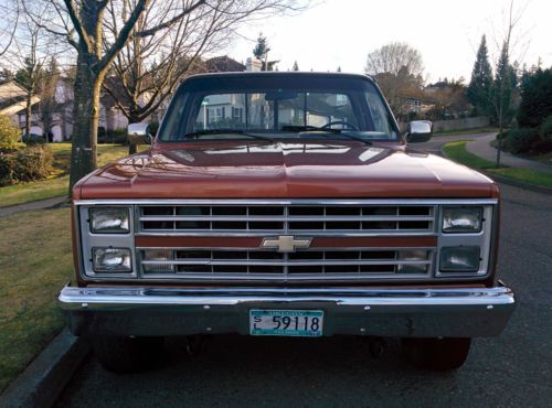 Is a 2 owner 1987 Chevy 1500 Silverado pickup that's been owned by a 75 year old man. The truck is a 4 wheel drive, shortbox, regular cab, which is very rare! Powered by a 350 V8 engine. And only 104,000 original miles! The truck is in excellent condition inside and out. It drives great, and there is ZERO RUST. Has factory A/C, tilt wheel, cruise control, power windows, power door locks, automatic transmission, shifts smooth. New brakes, good tires, NO body damage, NO cracks in the dash, NO rust at all. This is a great opportunity to own a piece of American history, will only appreciate in value thru the years. Don't let this one pass you by! A $1,000 cash deposit is required within 24 hours of auction close.