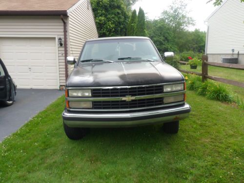 1993 Chevrolet Silverado 1500 "Choo Choo Customs." The truck runs great and starts right up every time. Drive belt and alternator were recently replaced. Bodyguard bed liner, wheels and tires are in good condition. There are issues with rust above the wheel wells and bottom of doors. Also the main brake line has been repaired several times and will need to be replaced. Frame has some surface rust, but otherwise is very solid. Some components of the suspension, mainly the rear shock assembly's will need considerable work. Lastly, the drivers side power window motor needs repair. The engine, transmission and frame are very solid and reliable. The body and suspension need some restoration though. Please see the pictures for a better understanding of the condition. Please email me with any questions and I'll have an answer for you within 24 hours. Happy Bidding!