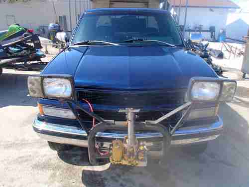 1993 Chevrolet 1500 Z71 off road package. Includes 8 ft Meyer plow. This truck needs nothing and can be driven anywhere. Lets start with the plow. 8 Ft meyer very good shape and tight. New shoes on plow along with new plow motor and all heavy duty cables, solenoids switches ect. Plow light all work . All functions of plow work as they should with no leaks or problems. The truck itself is being used righ now and will have more miles on it than listed.Tires are fair shape with about 1/4 inch of tread. Interior is very very clean for the year. Exterior is very nice shape with a few small rust spots above left front wheel and right rear wheel. Newer full exhaust installed last year, New Heavy duty alternator . New rear brake shoes fronts at 75%. full Transmission service last year, oil and filter done in fall along with all other fluids filters ect. including plow fluid. Brand new battery installed at start of the winter season along with new cable to starter. Belt is new, antifreeze is new along with flush and new t-stat. This truck drives nice down the road and would not be afraid to drive anywhere. The only thing it needs is a windshield it does have a crack all the way across, It does have some scratches on the right wheel well side someone swiped into it. .Any question just email me or ask for my number . Being sold as is and is being sold locally and reserve the right to end the auction and any time. We will have no problem delviering up to 100 miles at an extra cost and will also aid in shipping it but buyer pays shipping cost.