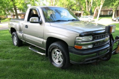 Up for sale is my 2000 Chevy Silverado 1500 LS. It is equipped with the Z71 Off-Road Suspension with a very reliable 4.8L Engine and 4WD Automatic Trans (shifts through all gears smoothly as it should) sliding rear window, power windows and locks, cruise control, CD player (single), stepside bed, running boards, grille guard and side window drip guards, bed liner and tow package. I am also including the snow plow package with the truck. This was used for my driveway and street only. This truck will go anywhere and has always been reliable. Starts right up in the coldest weather (-15) without hesitation. There is some bubbling on the front fenders and a few nicks as expected with its age. Nothing major. The paint still shines nice. I have recently moved and the truck is no longer needed and is just taking up space in my drive.