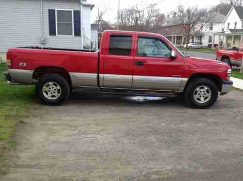 2000 Chevy Silverado 1500 Z71 Extended cab 5.3L with electronic 4x4. Best color combo of Red with silver lower. 154,000 miles. Power windows, seats, locks. New General Grabber AT tires. Brand new wheel bearings (both front), new starter, rear U joints. Brake lines and fuel line replaced by garage. Recently rebuilt transmission (last year, professionally done). Cab rocker panels cut out and replaced along with cab corners with cab repainted by professional body shop 2 yrs. ago. Lots of new parts replaced that are typical for a truck this age. Truck regularly serviced with synthetic oil. Well taken care of, as evidenced by the maintenance done.