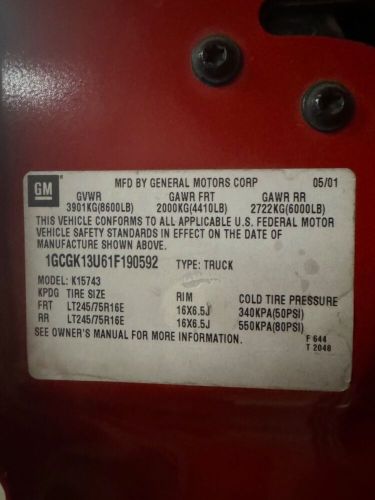 VIN (Vehicle Identification Number): 1gcgk13u61f190592