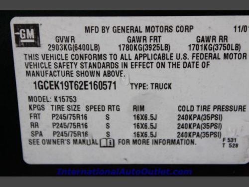 VIN (Vehicle Identification Number): 1GCEK19T62E160571