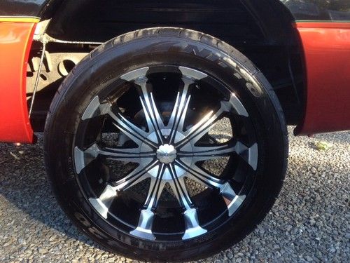 Exterior; had the bottom repainted sunrise red with custom graphics, billet door handles, sport mirrors with turn signals, led tail lights, new windshield, all side molding and badges removed.